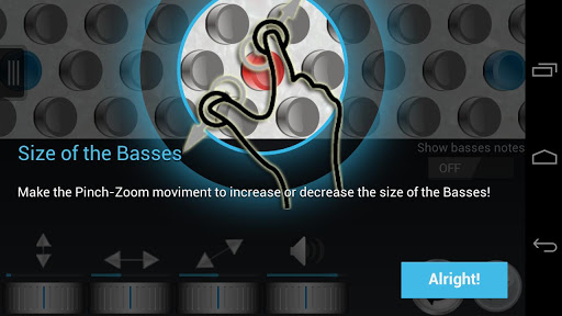 - Easy to use and intuitive controls to adjust the sound volumes, to show tips about notes and to set keyboard and basses scrolling.